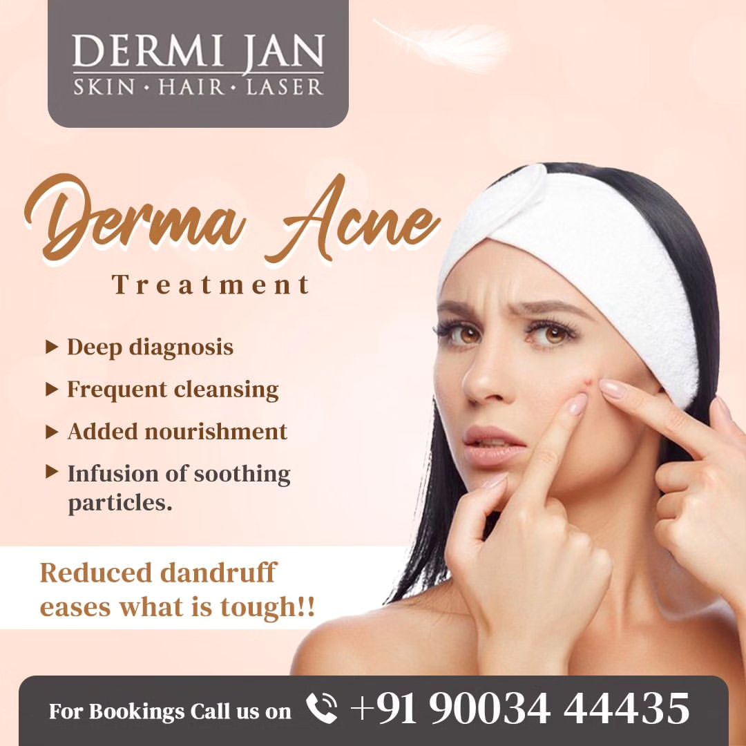 Derma Acne Treatment in Chennai ► Deep diagnosis ► Frequent cleansing ► Added nourishment ► Infusion of soothing particles Reduced dandruff eases what is tough! Dermi Jan Skin Hair & Laser Clinic Derma Acne Treatment in Adyar Chennai 4.9 ⭐⭐⭐⭐⭐ in Google review