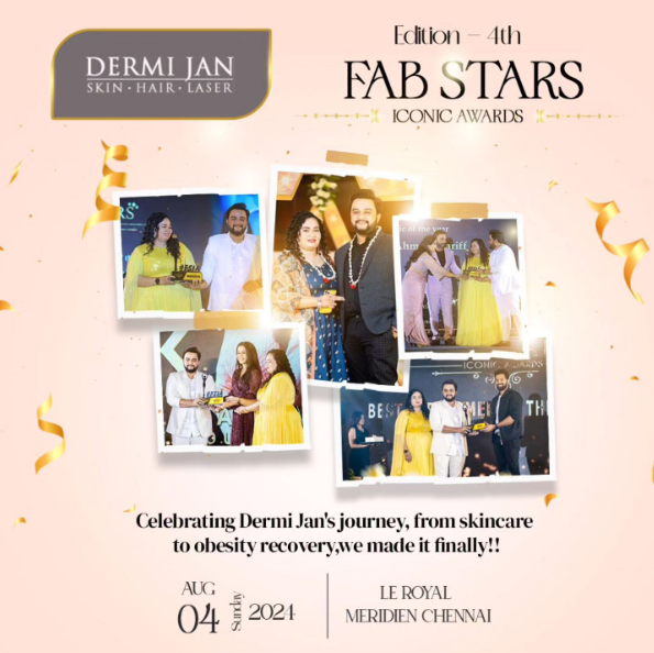 🏆🌟FAB STARS - ICONIC AWARDS"4th Edition on August 4th, 2024, at Le Royal Meridien Chennai. 🌟 Celebrating Dermi jan's Journey, from skincare to obesity recovery, We made it finally !! #Dermijaan #FABSTARS #IconicAwards #LeRoyalMeridien #ChennaiEvents #AwardCeremony #LuxuryEvents #Glamour #StarStudded #TitleSponsor #IconicMoments #Celebration #Elegance #TopAwards #ChennaiLifestyle #RedCarpetEvent #VIP #AwardNight #DermijaanSponsorship#1daystogo #EventOfTheYear #HighProfileEvent #CelebritySpotting #AugustEvents #ChennaiCelebration#CountdownBegins#business#launchingsoon