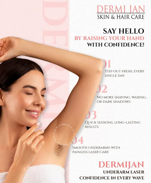Laser Hair Removal Treatment in Adyar Say YES to Confidence! No more shaving, waxing, or dark shadows – just smooth, flawless underarms with Dermijan’s Painless Laser Care Step out fresh every day Quick sessions, long-lasting results Confidence in every wave!
