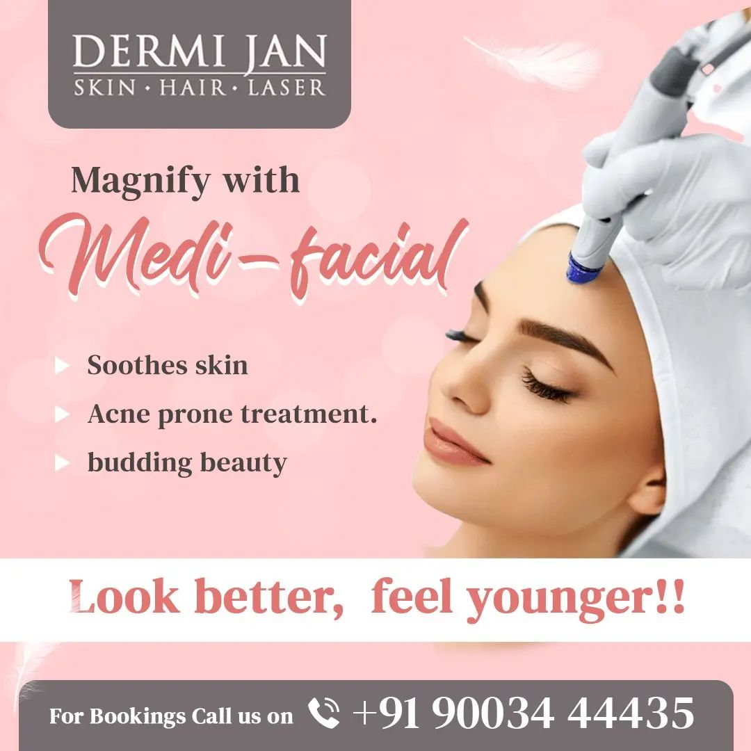 "🌟 Unveil Your True Beauty with Our Medi-Facial Treatment! 🌟 Say goodbye to acne worries and hello to smoother, radiant skin. ✨✨ Our Medi-facial is the secret to your budding beauty journey, helping you achieve that flawless, acne-free glow. ✨💁♀️ ❤️ For complete care visit Dermi Jan skin, hair, and laser clinic. Dermi Jan Skin Hair & Laser Clinic is one of the leading clinics in Chennai with affordable cost. Medi-Facial Treatment in Adyar Chennai 4.9 ⭐⭐⭐⭐⭐ in Google review