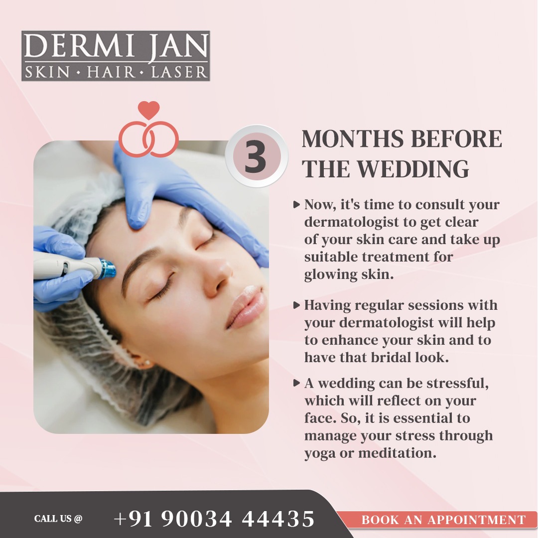 Wedding Skin Care Treatment in Adyar Chennai Skin Clinic in Adyar Get Complete Wedding Skin Care!!!!!!! An early start is the key to that stunning bridal look...... Here's the suggestion for 3 Month Before the Wedding #Dermijan #weddingskincare #skincare #adyar #dermatologist